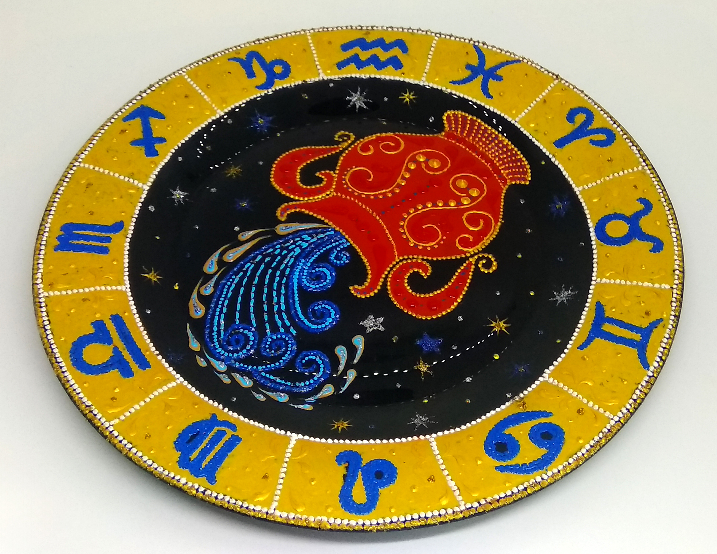 Декоративная тарелка "Водолей" - это уникальное произведение искусства, которое станет прекрасным дополнением к интерьеру вашего дома или офиса.