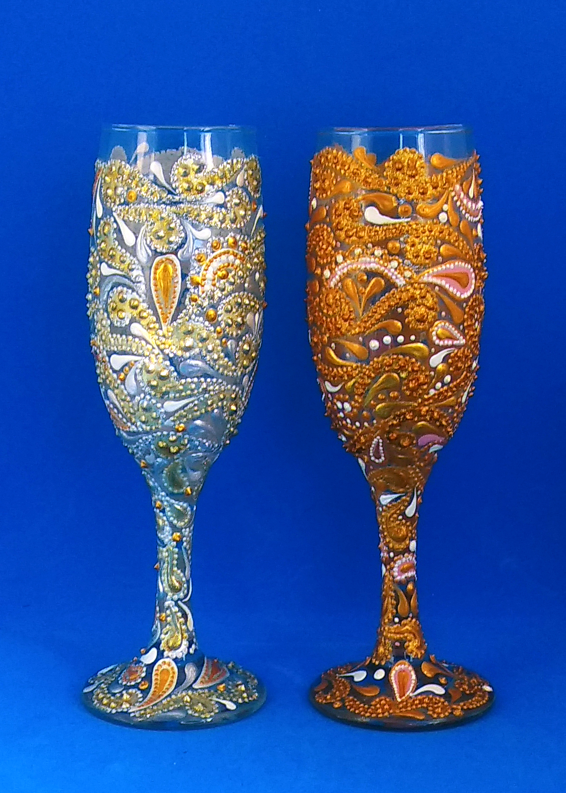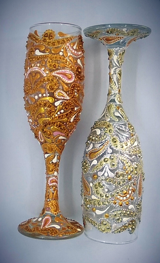 Авторская работа. Роспись акриловыми контурами и краской, декор глиттером золотого и серебрянного цвета.